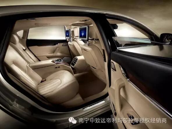 全新Quattroporte總裁轎車的內(nèi)飾是意大利杰出設(shè)計的縮影,這里運用了Poltrona Frau®皮革、精美木材和手工縫線,以營造出奢華的空間與氛圍。三層儀表臺寬大的中層飾板橫跨整個車身寬度,使得車內(nèi)空間更顯寬敞。而符合人機工程學(xué)設(shè)計的三幅方向盤更帶有多媒體操控按鈕和鋁制換擋撥片。在瑪莎拉蒂總裁轎車的座艙中,舒適性不是一種主觀的感覺,而是顯而易見的事實,更長的軸距使瑪莎拉蒂能夠提供比其它同級車型更大的后排空間和行李艙空間。