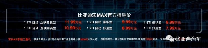 在一起,更完美!2017年9月25日,比亞迪攜國際大師專為中國主流家庭量身打造的“大美7座車”——宋MAX在北京水立方震撼上市,售價7.99萬——11.99萬元,樹立了10-15萬級家用7座車品質標桿,F(xiàn)在購車的用戶還可享幸福三重禮,購車輕松無壓力。