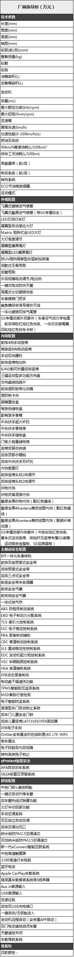 向右滑動,查看2018新威朗兩廂/GS完整配置